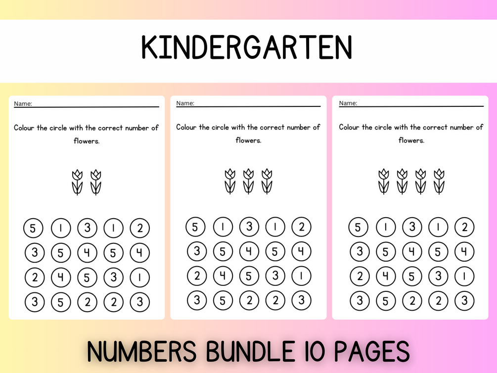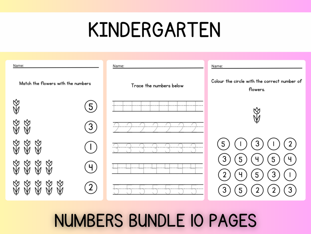 Kindergarten Numbers Bundle – 10 Pages of Fun & Interactive Learning